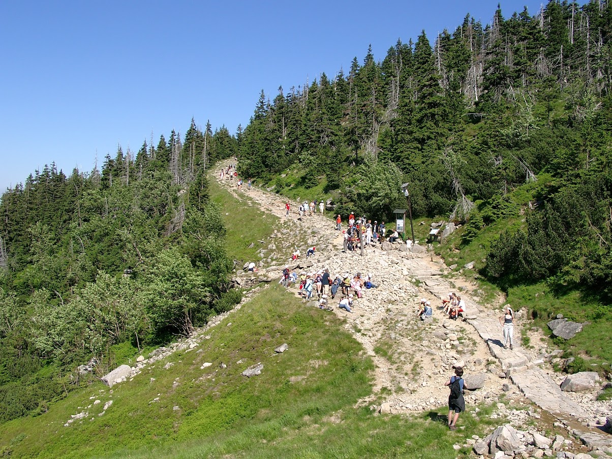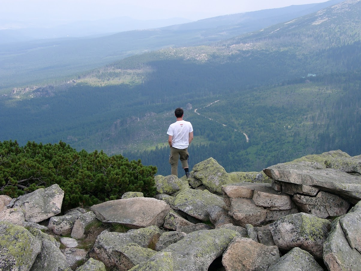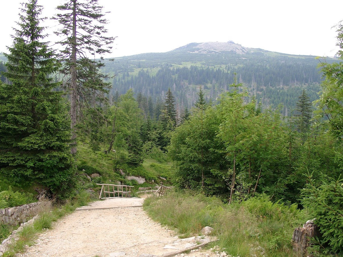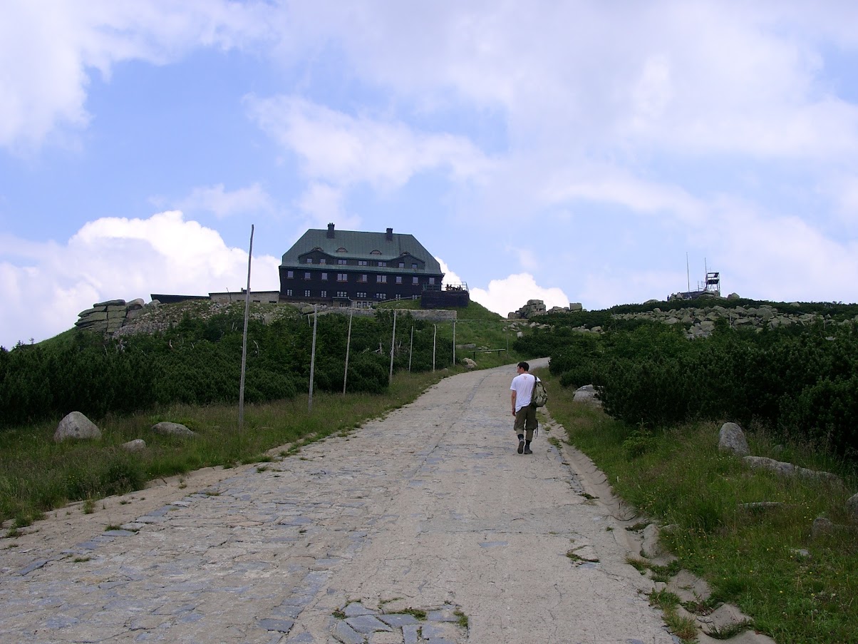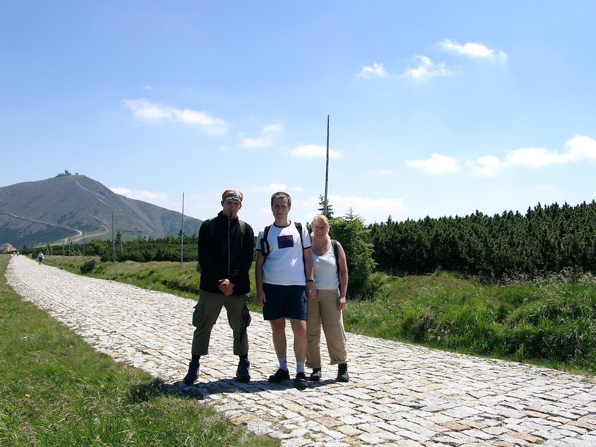 Kolejną górską wycieczką było wejście na Szrenicę, z której ja zjechałem kolejką na dół, przez problemy z bolącą nogą. Nosiłem wtedy pierwsze buty trekingowe (zmiana z wysokich glanów 😝 ), z jakiegoś dyskontu. I wędrówka na Śnieżkę, pierwsze ich użycie, je wykończyła, rozwaliłem wkładkę na pięcie, na zejściu piętą gniotłem po konstrukcji, takiej kratce, co skończyło się poranioną piętą...