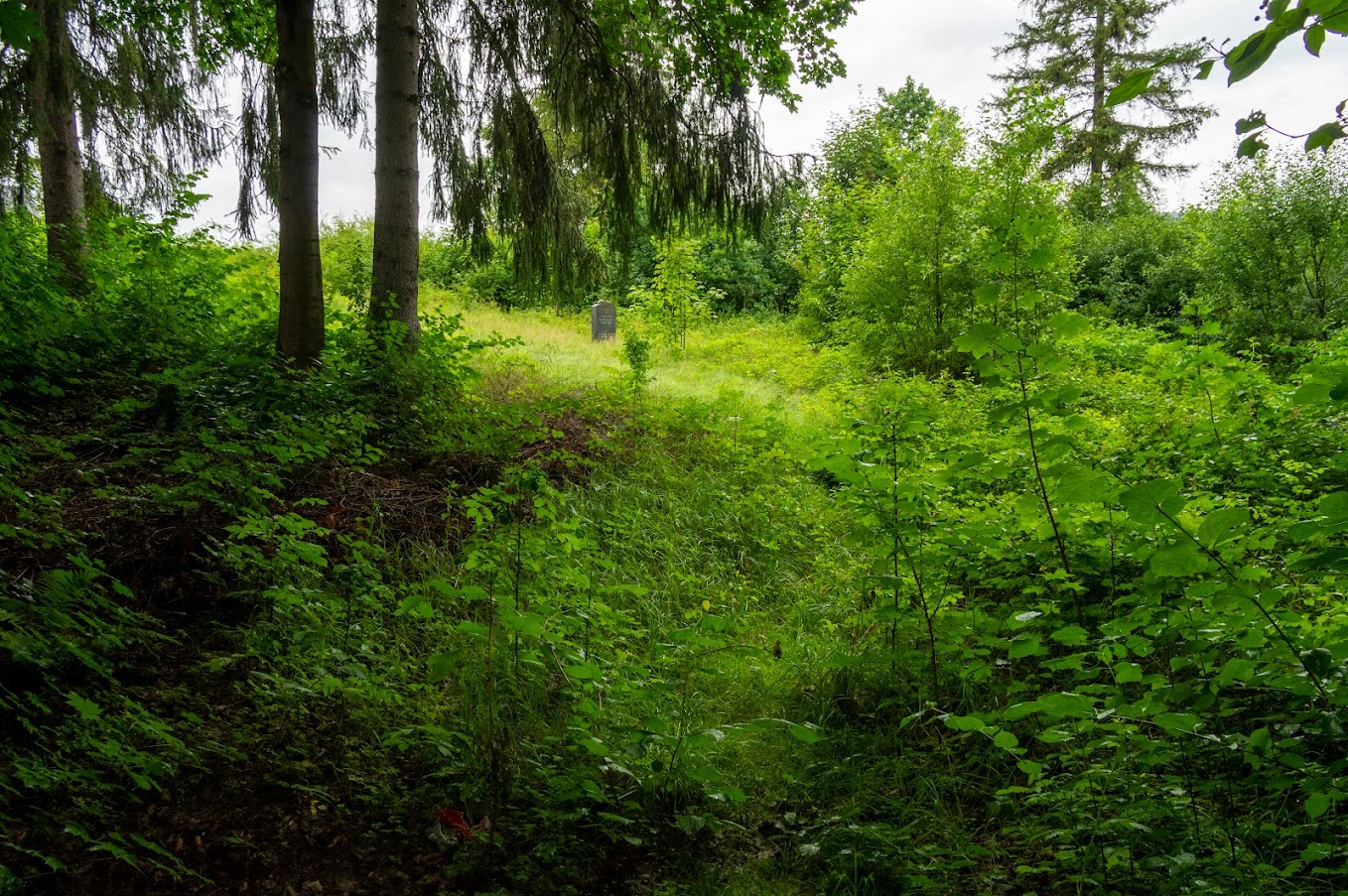 Jest on zarośnięty i stoi tylko jeden pomnik, bo macewa to raczej nie jest (?)